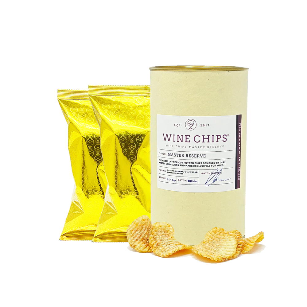 Introducing the ultimate Wine Chips, made exclusively for caviar and sparkling wine pairings. Each 3oz. bag is made for 30g+ Caviar Tins and full bottles of wine, particularly those who love bubbles, sparkles and all of the elegance in between: The 3oz. Master Reserve Starter Kit by Wine Chips. This hand-curated, non-seasoned selection features our most refined chip — intentionally unflavored — designed by our team of Master Sommeliers and batch masters to create an unrivaled pairing experience with caviar and festive wines. Each starter kit includes one 3oz. tube of Master Reserve and two Master Reserve refill bags.